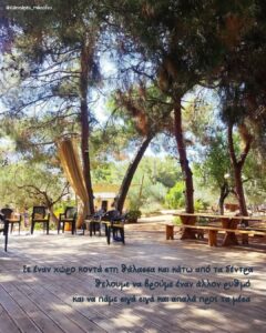 Κάτω από τα δέντρα και κοντά στη θάλασσα, αλλάζουμε ρυθμό και κινούμαστε απαλά προς τα μέσα.